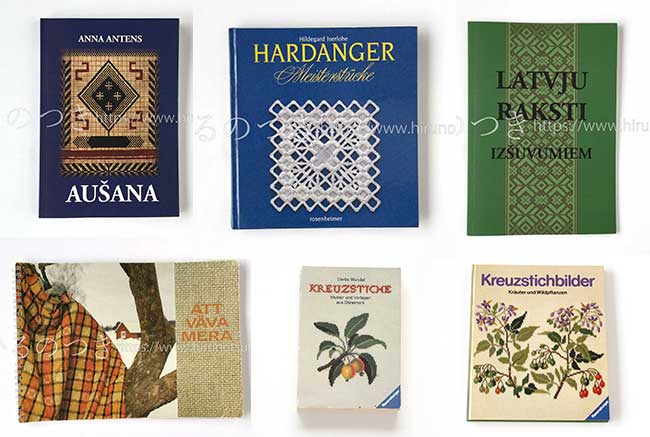 ラトビアの刺繍・織物本(新刊)、フレメの図案集、スウェーデンの織物本、ハーダンガー刺繍本など入れました。