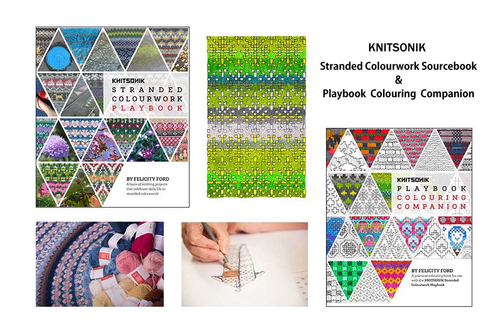 アーティスト兼デザイナーであるフェリスティ・フォードさんによる『KNITSONIK Stranded Colourwork Sourcebook』と『KNITSONIK Playbook Colouring Companion』です。