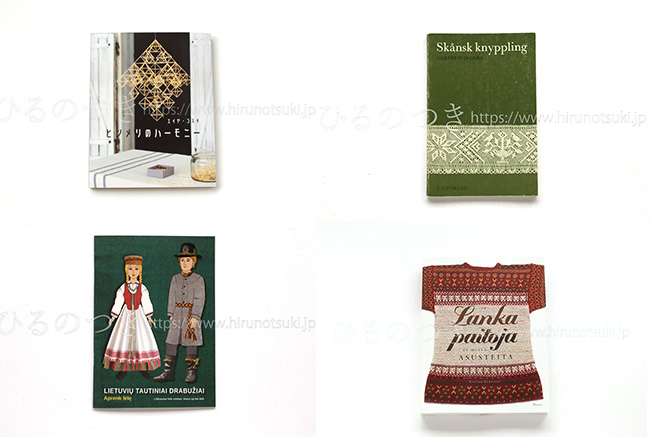 エイヤ・コスキさんの日本語版『ヒンメリのハーモニー』、リトアニアの民族衣装の着せかえ絵本、フィンランドの伝統セーター本、スウェーデンのボビンレース本を入れました。