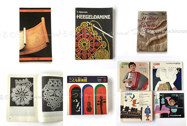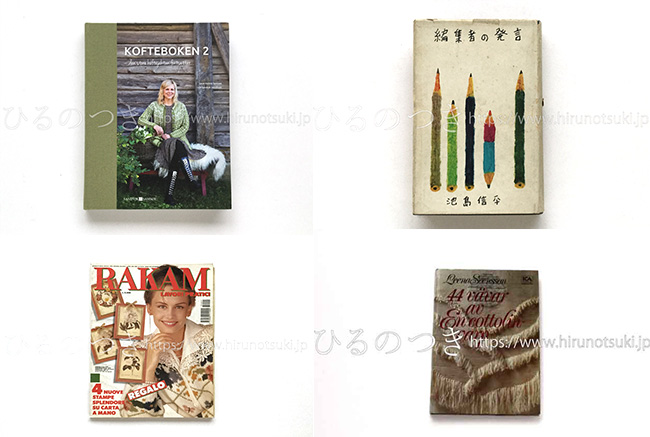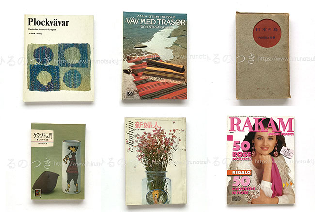 スウェーデン・ノルウェーの織物本、アイヌの人々の写真集、イタリアの手芸雑誌、フィリシタス・クーンのかわいらしい絵本など入れました。