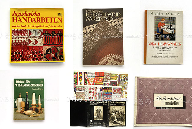 エストニアのかぎ針編み、民族衣装のシート集、スウェーデンの織り物、刺しゅうの本などなど入れました。