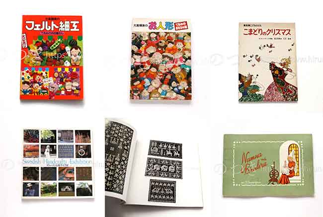 スウェーデンの刺繍図案集、伝統工芸展の図録、日本の絵本、手芸本などなど入れました。