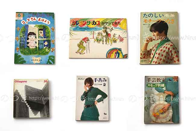 日本の絵本、編み物本、刺繍本、イタリアの建築・インダストリアルデザイン雑誌などを入れました。